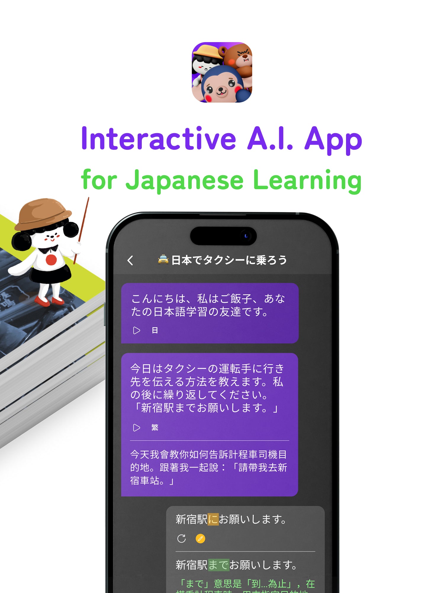 Each bundle includes a physical book and access to our AI-powered learning app Kokomonster. Kokomonster app enhances your learning with interactive features like audio readings, word-by-word translations, and AI speaking practice.